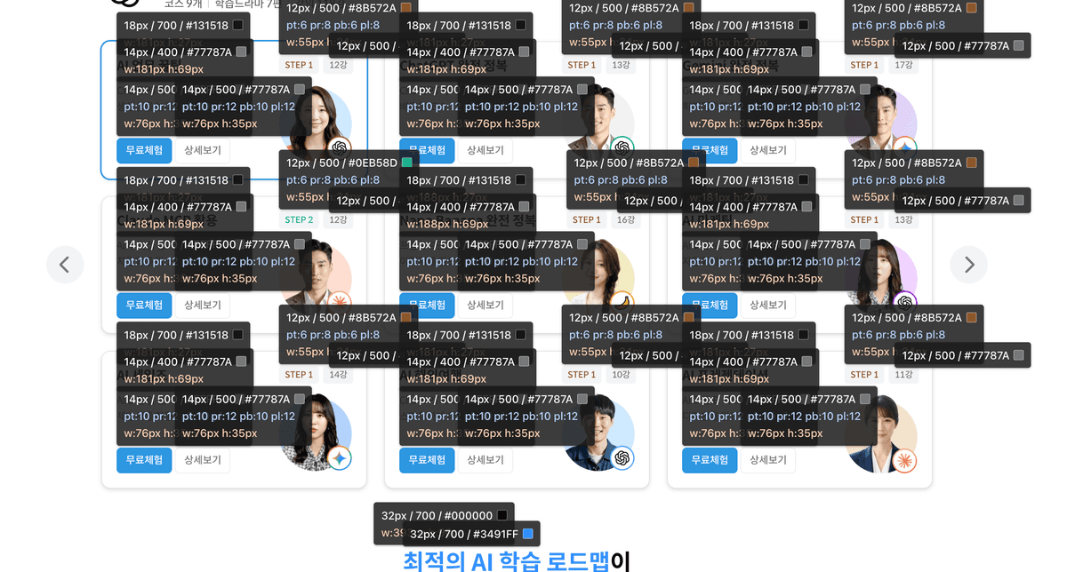 이런식으로 같은 스타일을 가진것들을 묶어서 좌측에 두고 호버시 선으로 연결하여 확인할 수 있게 했다.