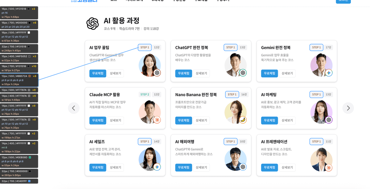 위와 같이 텍스트가 다닥다닥 붙어있는 경우 가독성이 좋지 않아 클로드코드와 의논하며 업데이트했다.